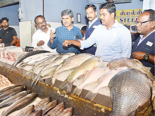 மார்க்கெட்டில் 110 கிலோ கெட்டுப்போன மீன்கள் பறிமுதல் செய்து உரிமையாளர்களுக்கு அபராதம் விதிக்கப்பட்டுள்ளது.