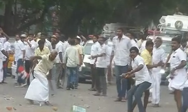 ஓபிஎஸ் ஆதரவாளர் மீது இபிஎஸ் ஆதரவாளர்கள் தாக்குதல், ஓபிஎஸ் ஆதரவாளர்கள் இபிஎஸ் ஆதரவாளர்களை தாக்கியதாகவும் தகவல் வெளியாகியுள்ளது. அதிமுக தலைமை அலுவலகம் அருகே தொண்டர்கள் கல்வீச்சில் காரணமாக அங்கு பரபரப்பான சூழல் நிலவி வருகிறது. இருதரப்பினரும் எதிர் எதிரே கற்களை வீசி தாக்குதல் நடத்தினர். இதில் காரின் கண்ணாடி உடைக்கப்பட்டுள்ளது.