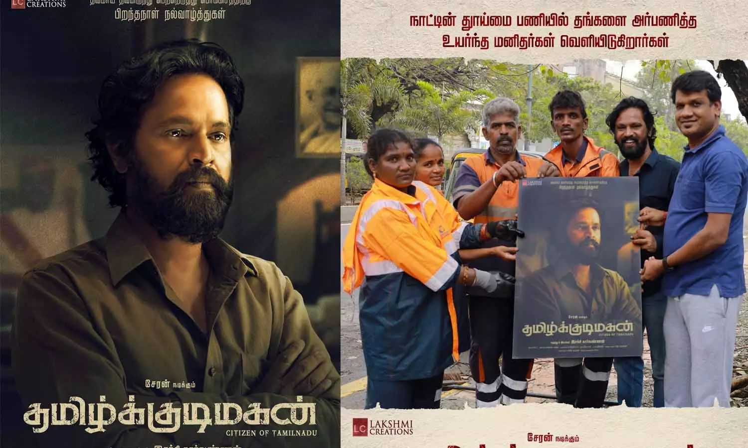 இந்நிலையில், ‘தமிழ்க்குடிமகன்’ படத்தின் போஸ்டரை ஆட்டோ ஓட்டுனர்கள், தூய்மை பணியாளர்கள் ஆகியோரை வைத்து படக்குழு வெளியிட்டுள்ளது. இந்த புகைப்படங்களை இயக்குனர் சேரன் தனது ட்விட்டர் பக்கத்தில் வெளியிட்டுள்ளார்.
