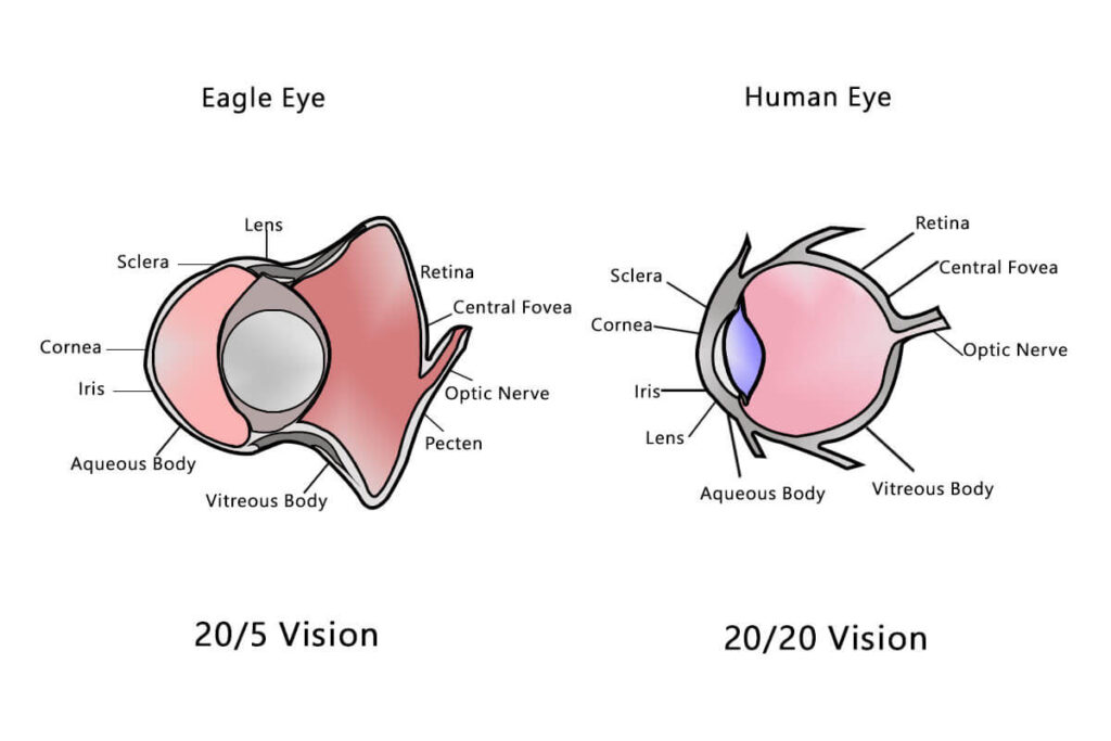 தூரங்களைச் சரியாகக் கணிக்கவும் ஆழ்பொருள்களைக் காணவும் நம் தலையின் முன்புறத்தில் இரண்டு கண்கள் அமைந்துள்ளன. மரங்களில் கிளைக்குக் கிளை ஆடி அசைந்து இயங்க வேண்டியிருந்ததால் இடை தூரங்களைத் துல்லியமாகக் கணிக்க வேண்டியதாயிற்று.