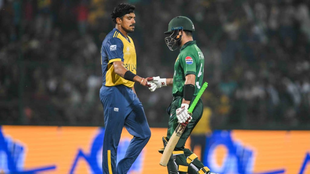 இலங்கை-பாகிஸ்தான் அணிகளுக்கு இடையிலான டி20 உலகக் கோப்பை தொடரின் சூப்பர் 8 சுற்று ஆட்டம் பல்லகலேவில் நடைபெற்றது. இந்த போட்டியில் டாஸ் வென்ற இலங்கை அணி முதலில் பவுலிங் செய்வதாக அறிவித்தது. அதன்படி களமிறங்கிய பாகிஸ்தான் அணிக்கு ஃபகர் ஜமான் மற்றும் சாஹிப்சாதா ஃபர்ஹான் இணை அதிரடியான தொடக்கத்தை வழங்கினர். இதில் இருவரும் தொடக்கம் முதலே பவுண்டரிகளையும் சிக்ஸர்களையும் பறக்கவிட்டனர்.