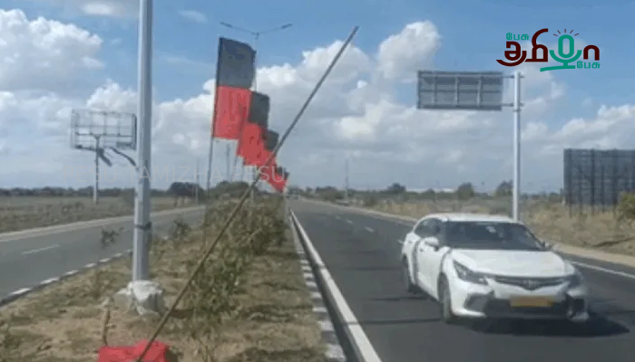 விருதுநகரில் நெடுஞ்சாலையில் நடப்பட்ட திமுகவின் கொடி கம்பங்கள் காற்றில் சரிந்து விழுவதால் விபத்து நேரிடும் அபாயம் ஏற்பட்டுள்ளதாக பொதுமக்கள் குற்றம்சாட்டி உள்ளனர்.