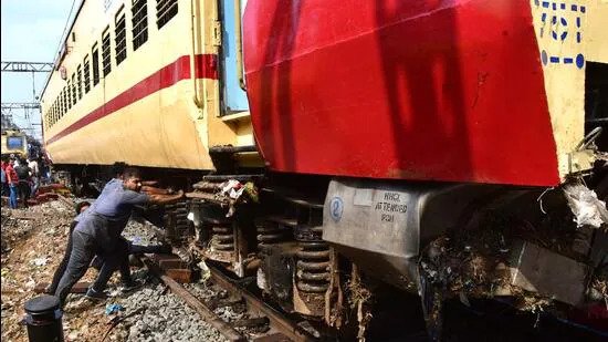 சென்ட்ரல் ரெயில் நிலையத்தில் திடீரென பின்னோக்கி நகர்ந்ததால் ரெயில் பெட்டிகள் தடம்புரண்டது.
